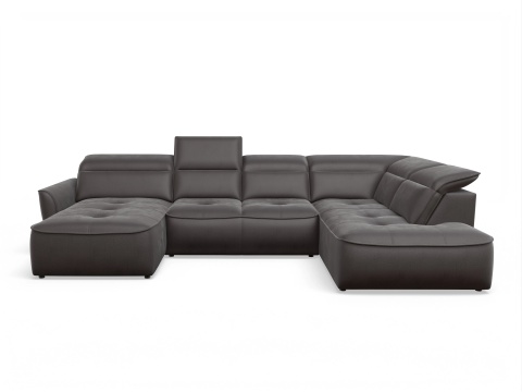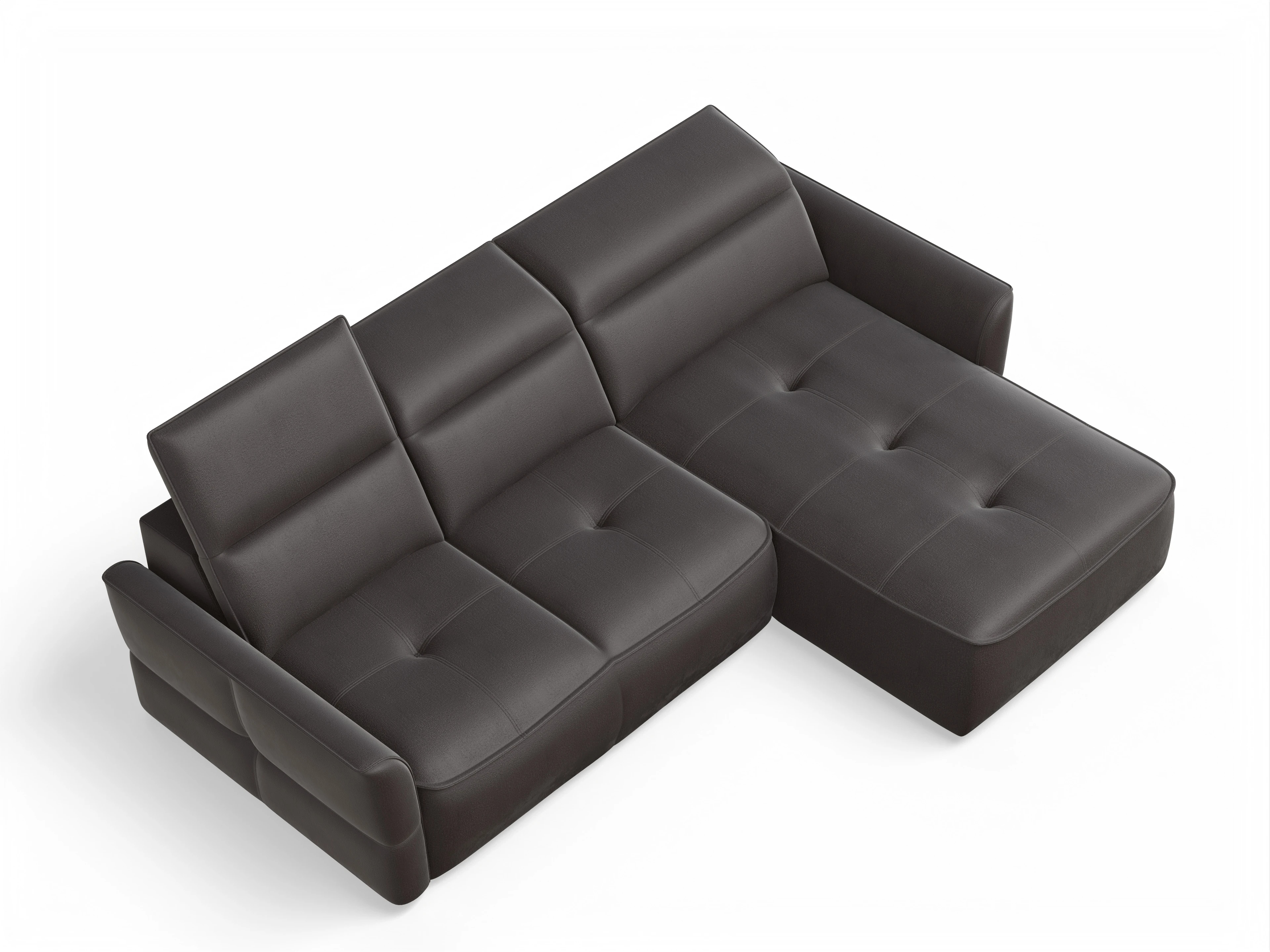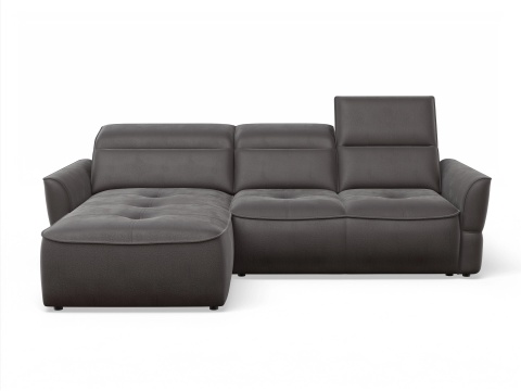 Das Ecksofa besteht aus einem 2-Sitzer mit Armlehne links inkl. motorischer Sitztiefenverstellung und einer Ottomane mit Armlehne rechts inkl. Bettkasten. Das Ecksofa wird mit 3 verstellbaren Kopfstützen geliefert.