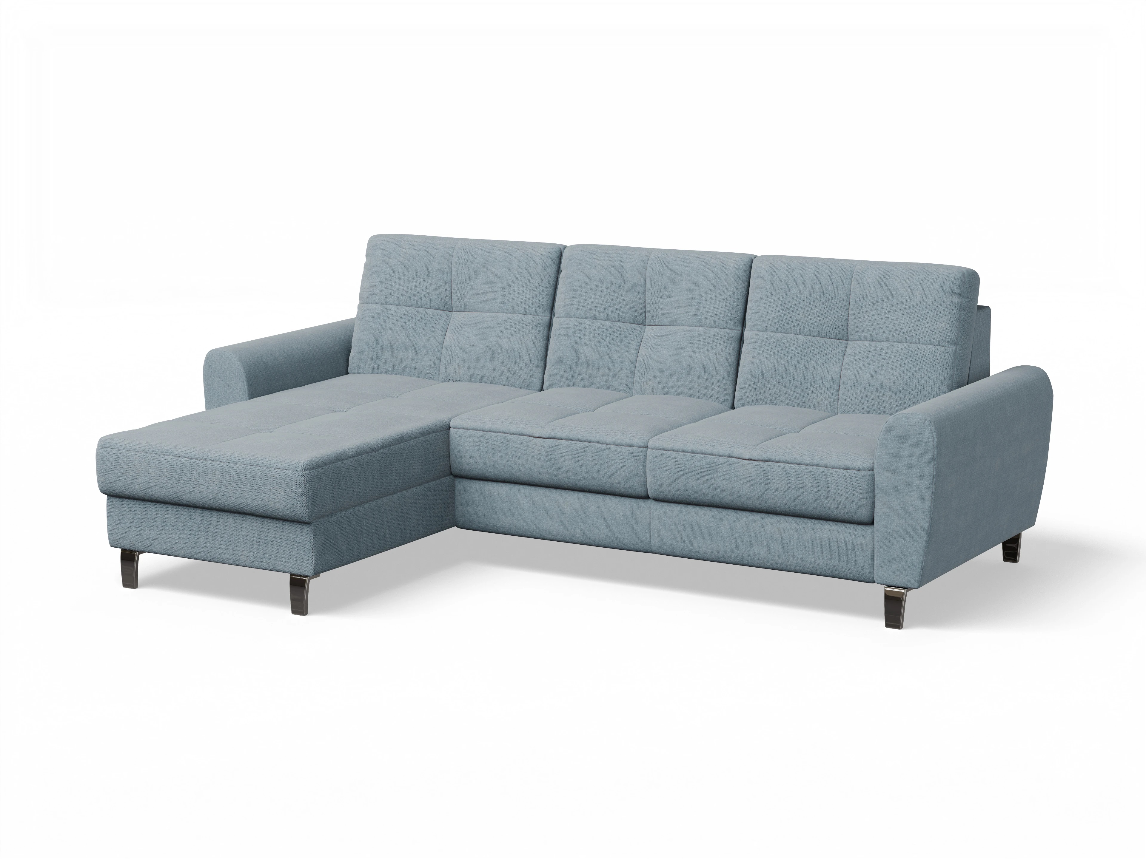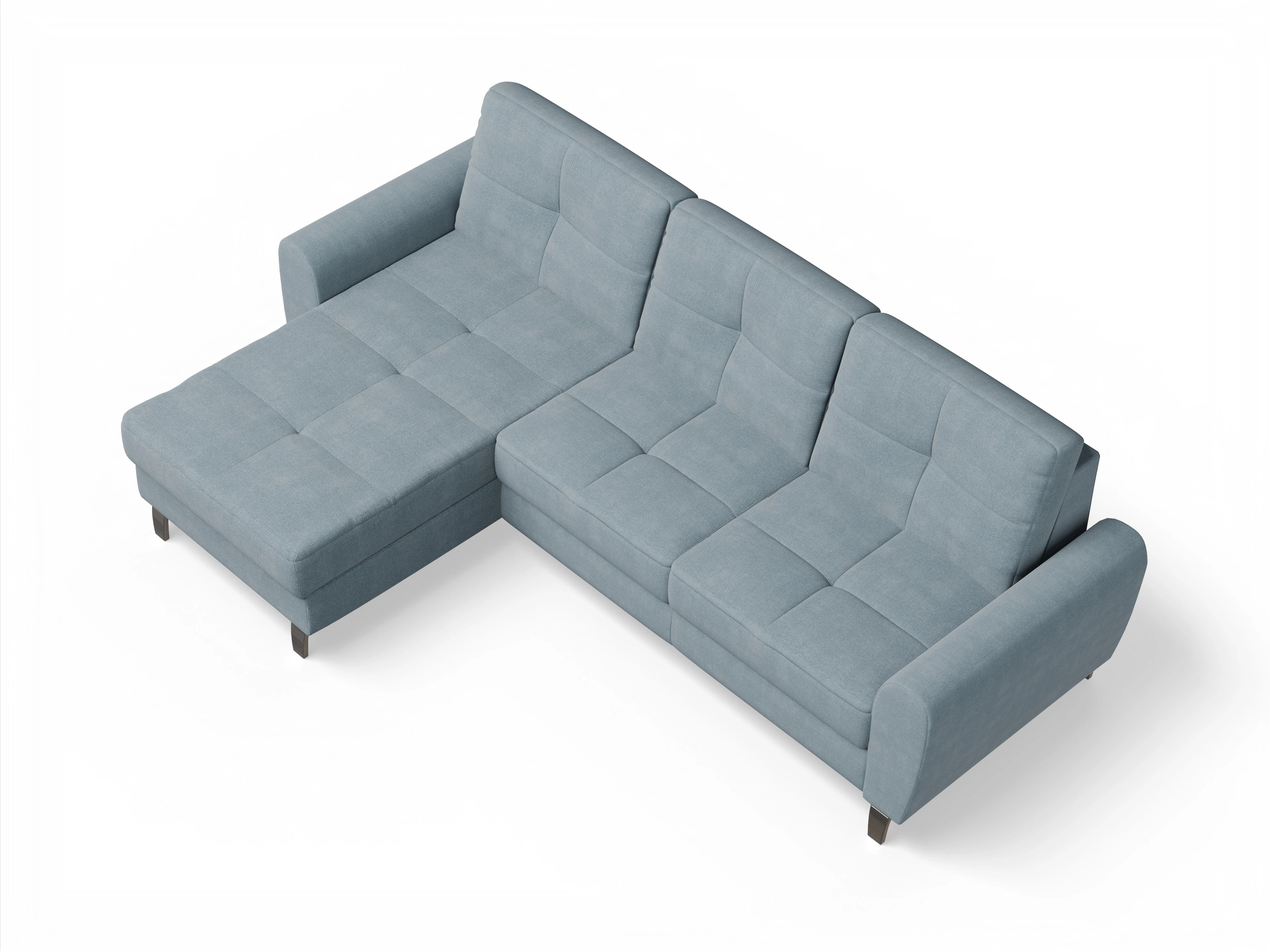 Das Ecksofa Valona besteht aus einem Longchair mit Armlehne links und einem 2,5-Sitzer mit Armlehne rechts.