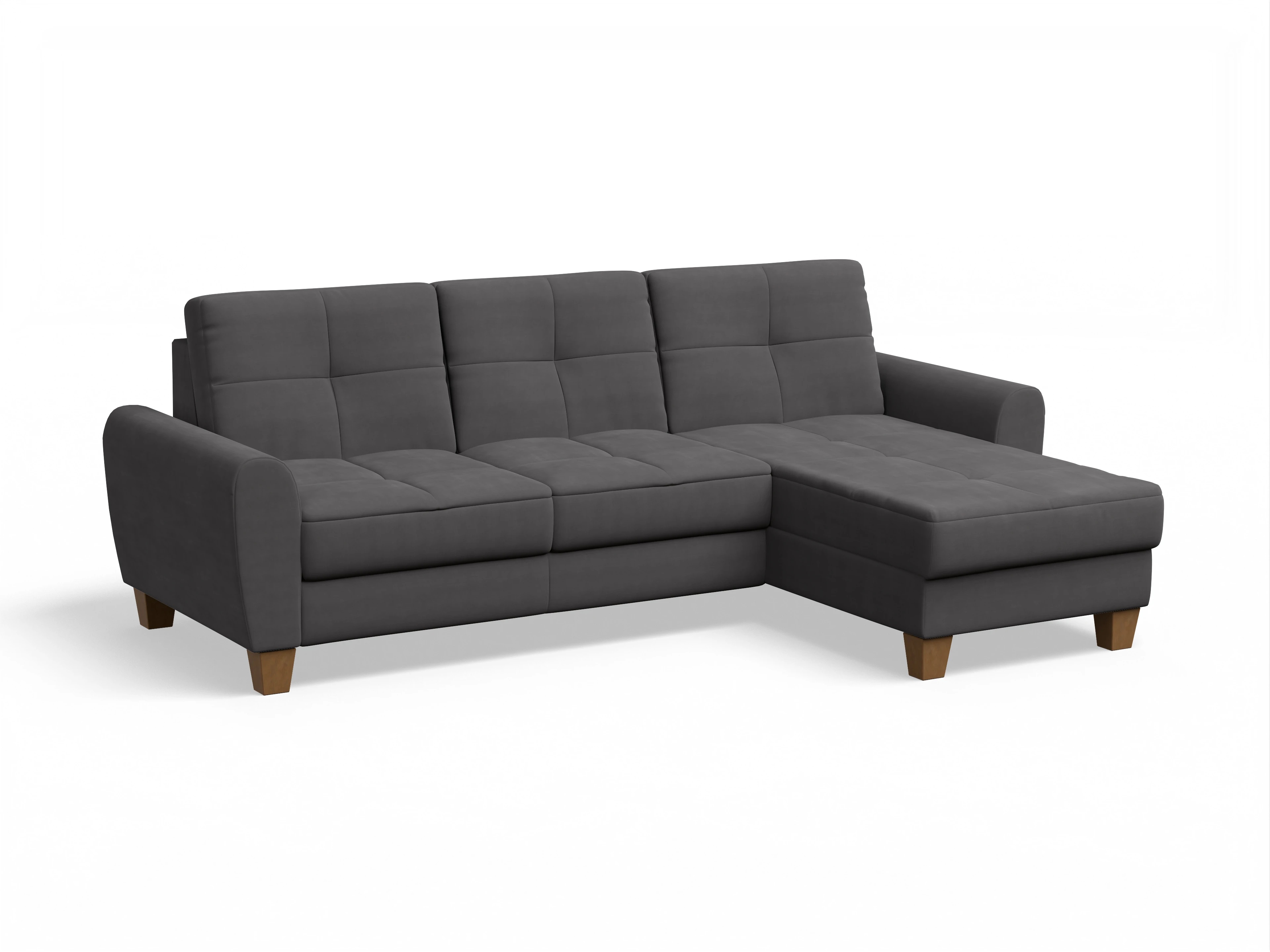 Das Valona Ecksofa besteht aus einem 2,5-Sitzer mit einer Armlehne links und einem Longchair mit Armlehne rechts.