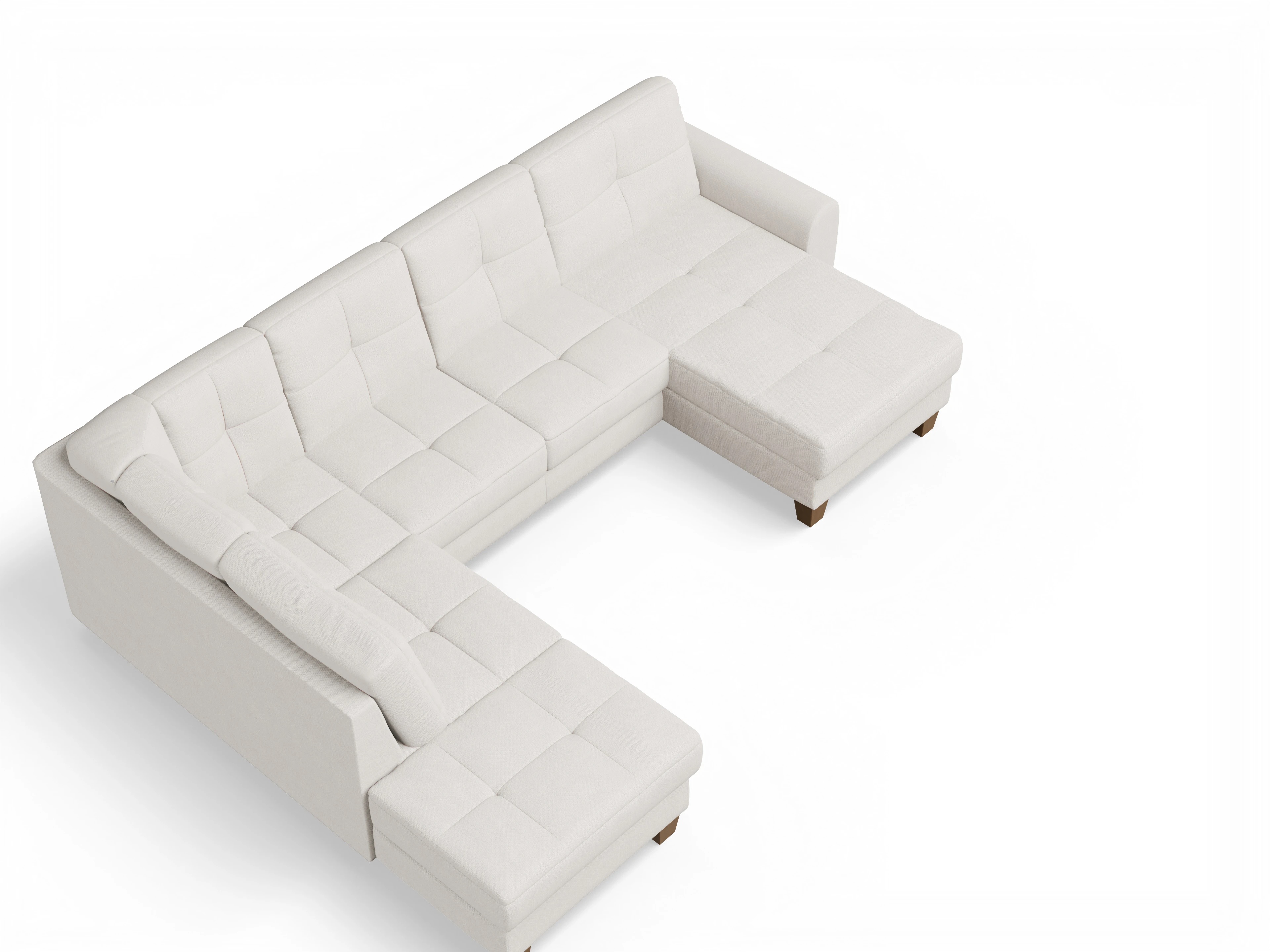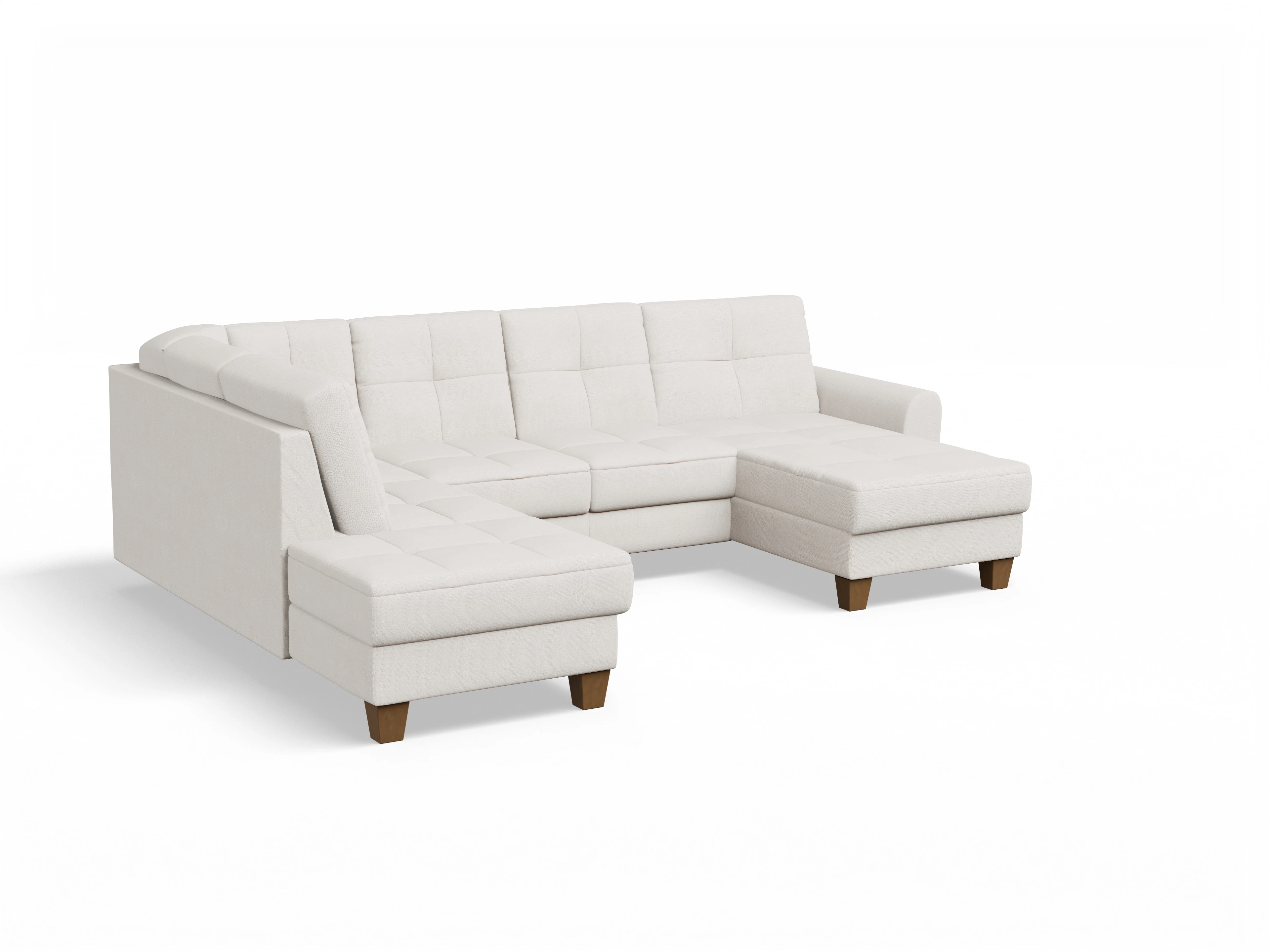 Die Wohnlandschaft besteht aus einer Ottomane links, einem 2-Sitzer mittig und einem Longchair rechts.