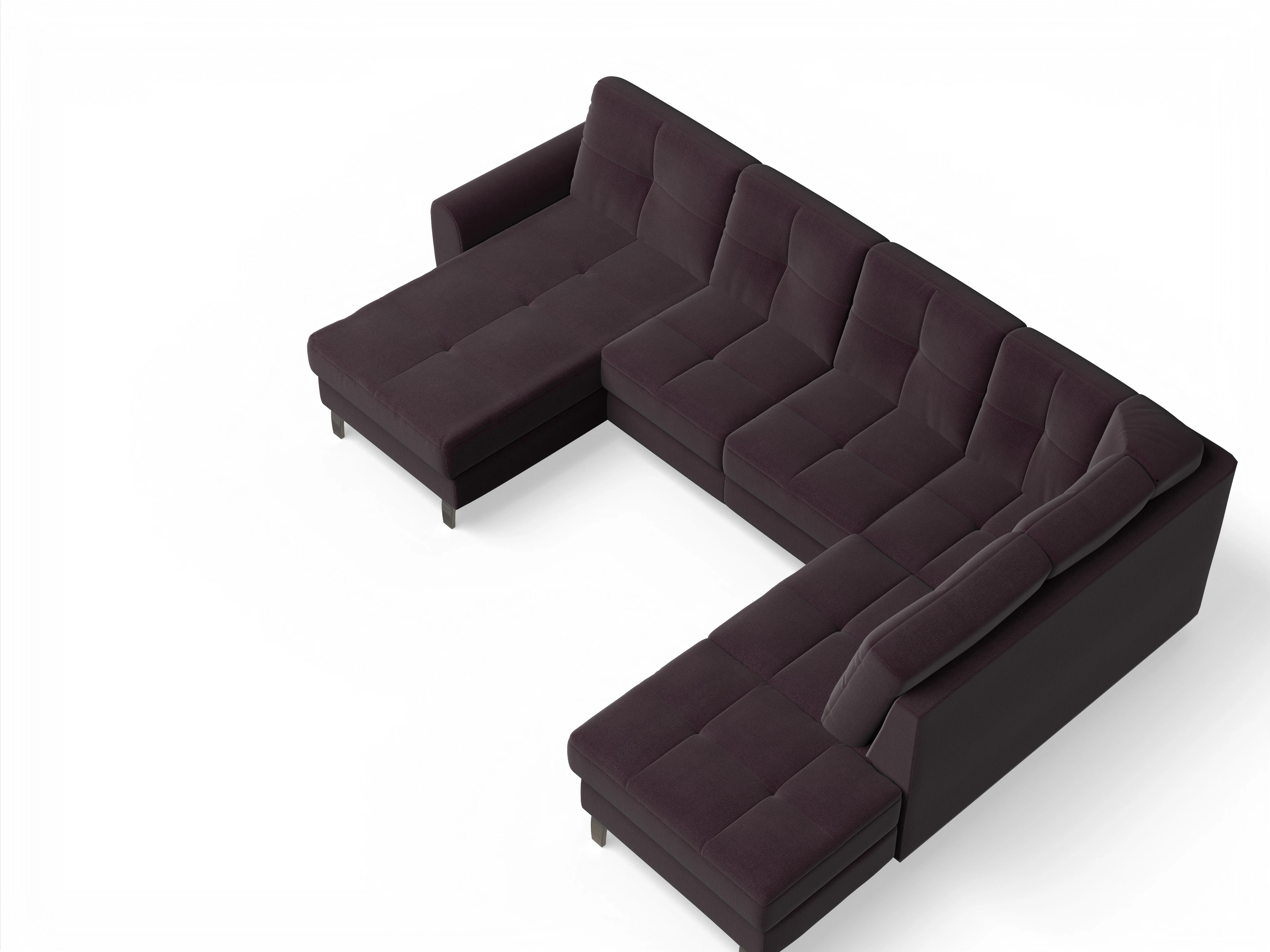 Die Wohnlandschaft besteht aus einem Longchair links, einem 2-Sitzer mittig und einer Ottomane rechts.