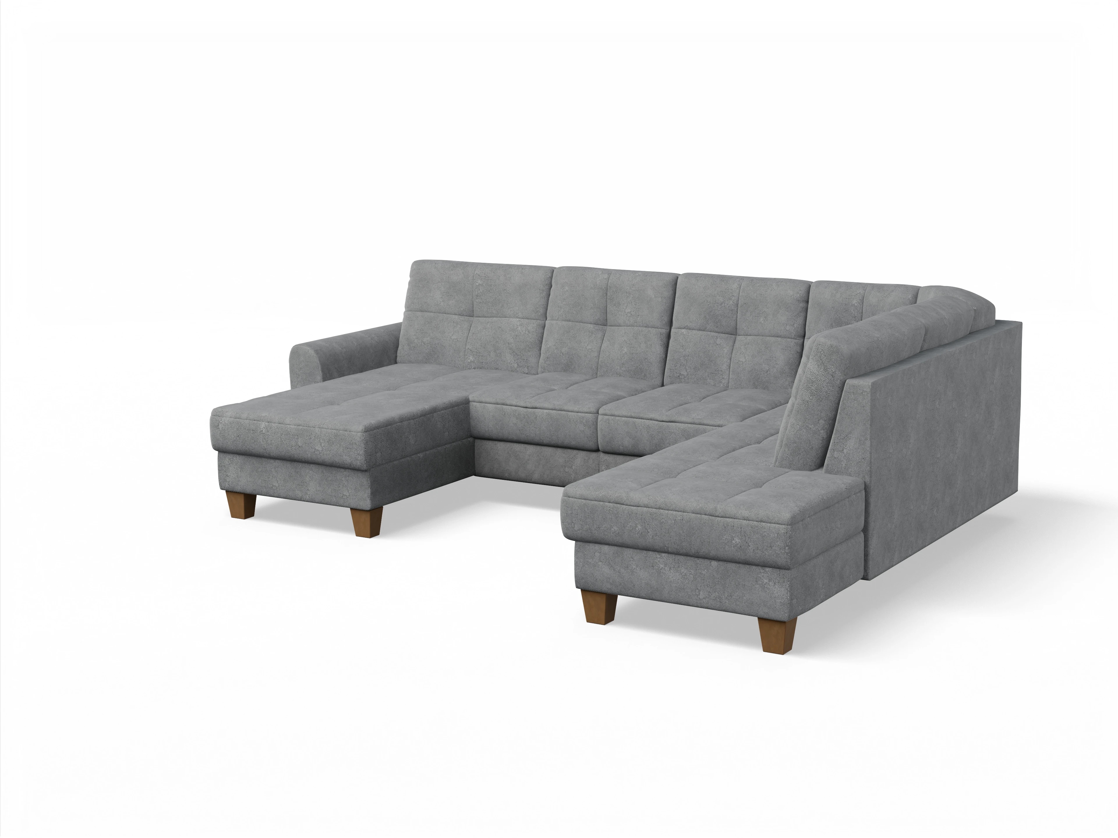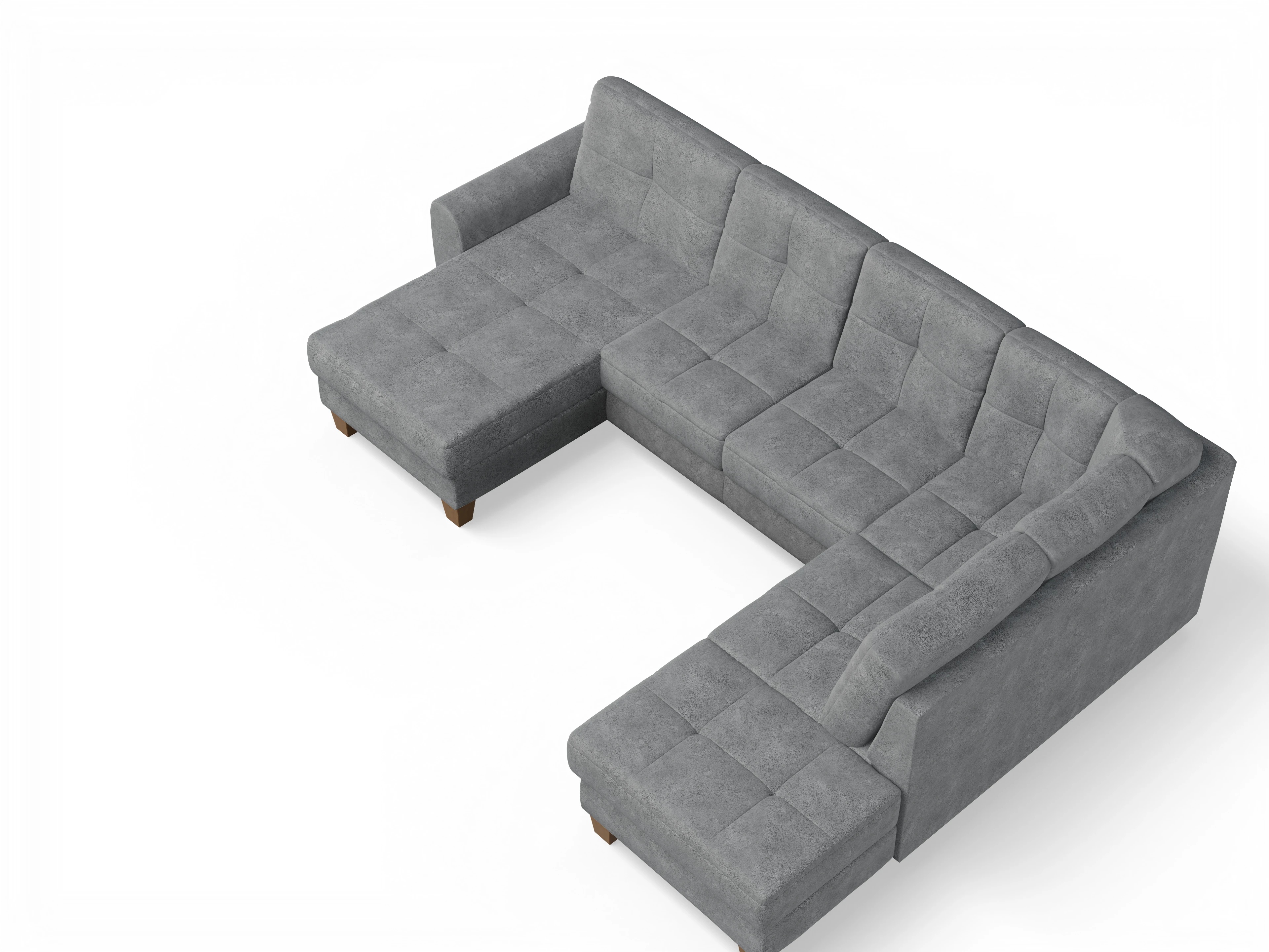 Die Wohnlandschaft besteht aus einem Longchair links, einem 2-Sitzer mittig und einer Ottomane rechts.