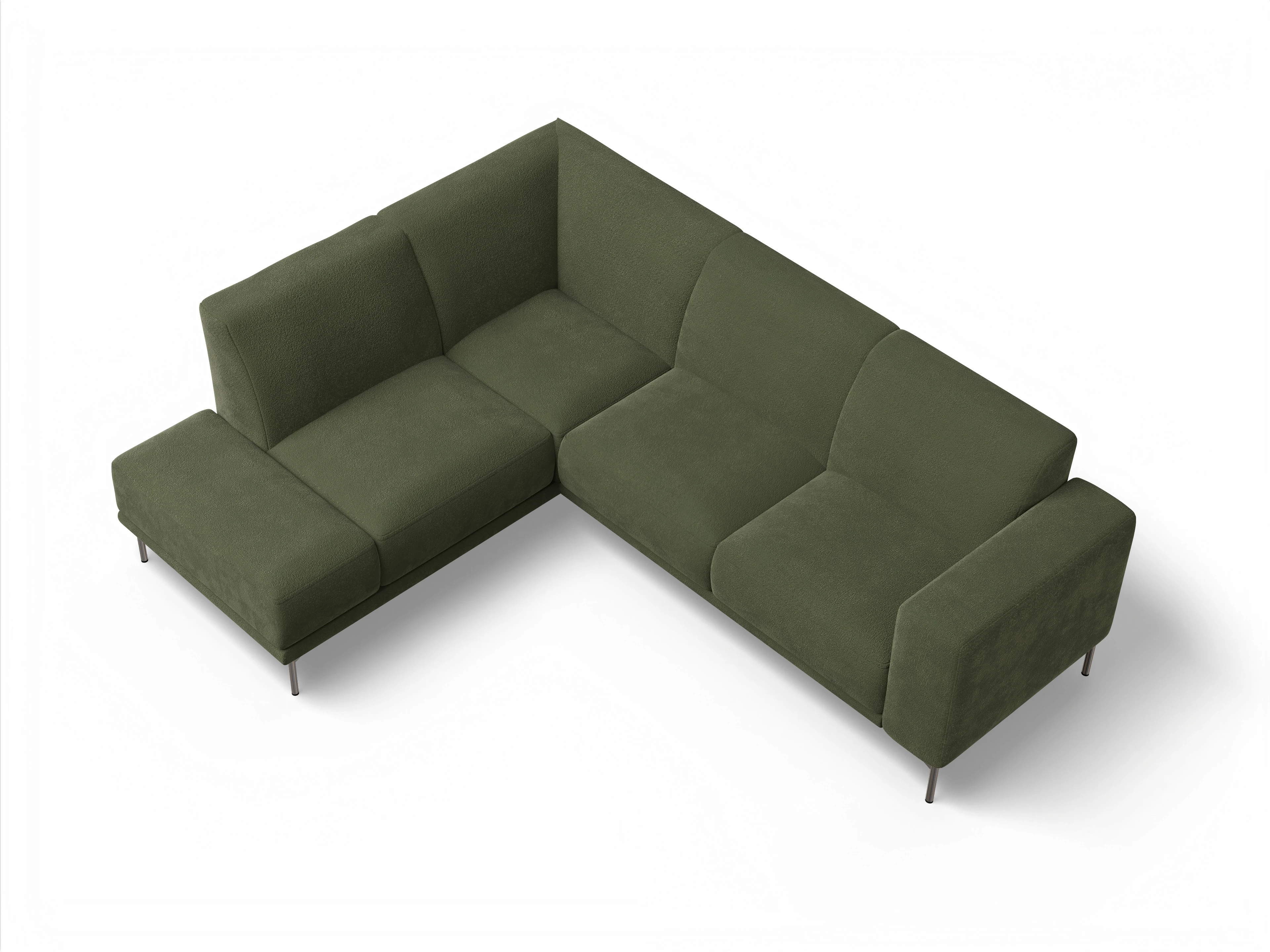 Das Viborg Ecksofa besteht aus einem Longchair links mit Rückenteil über die Ecke ohne Armlehne und einem 2,5-Sitzer mit einer Armlehne rechts.