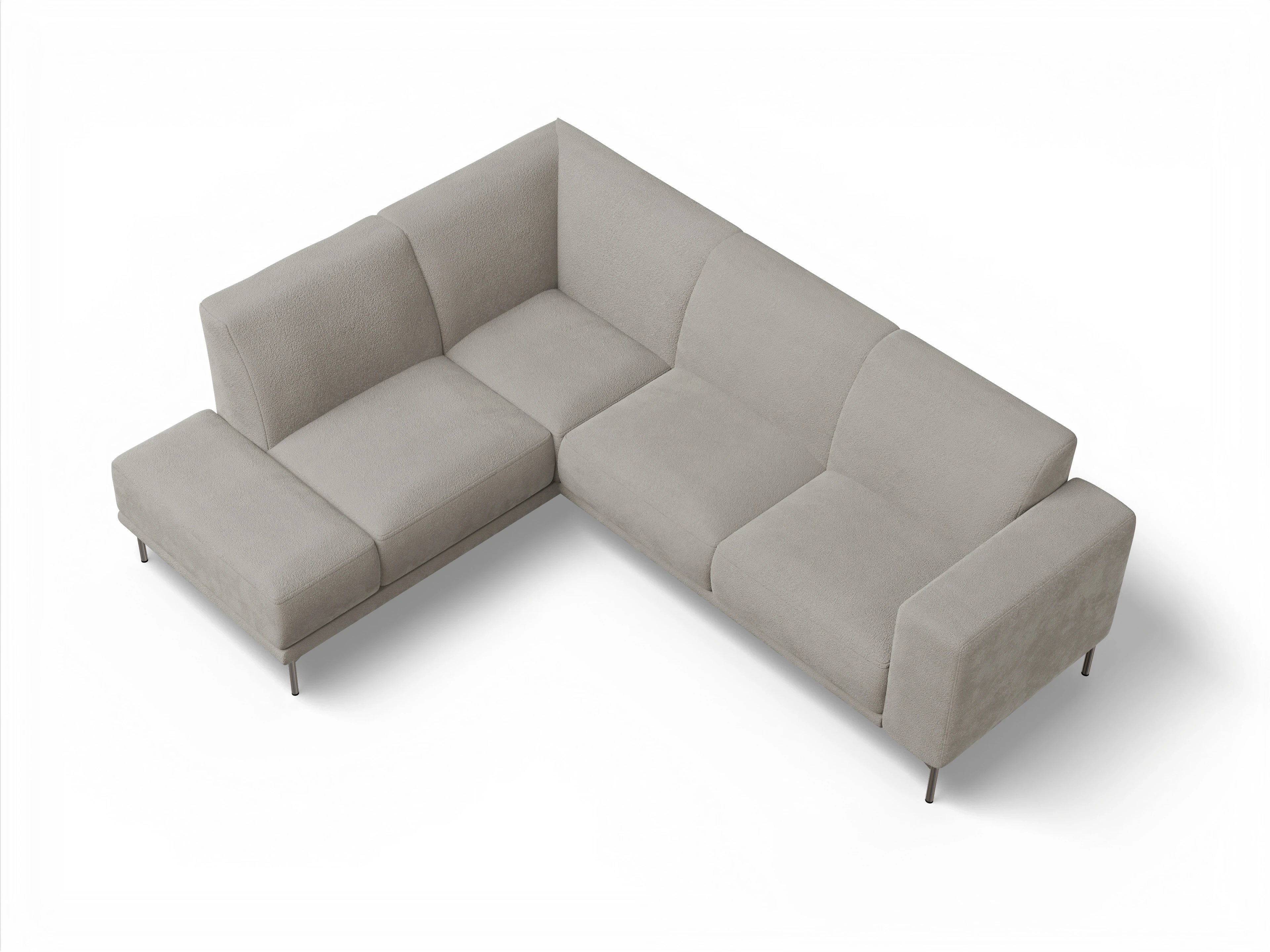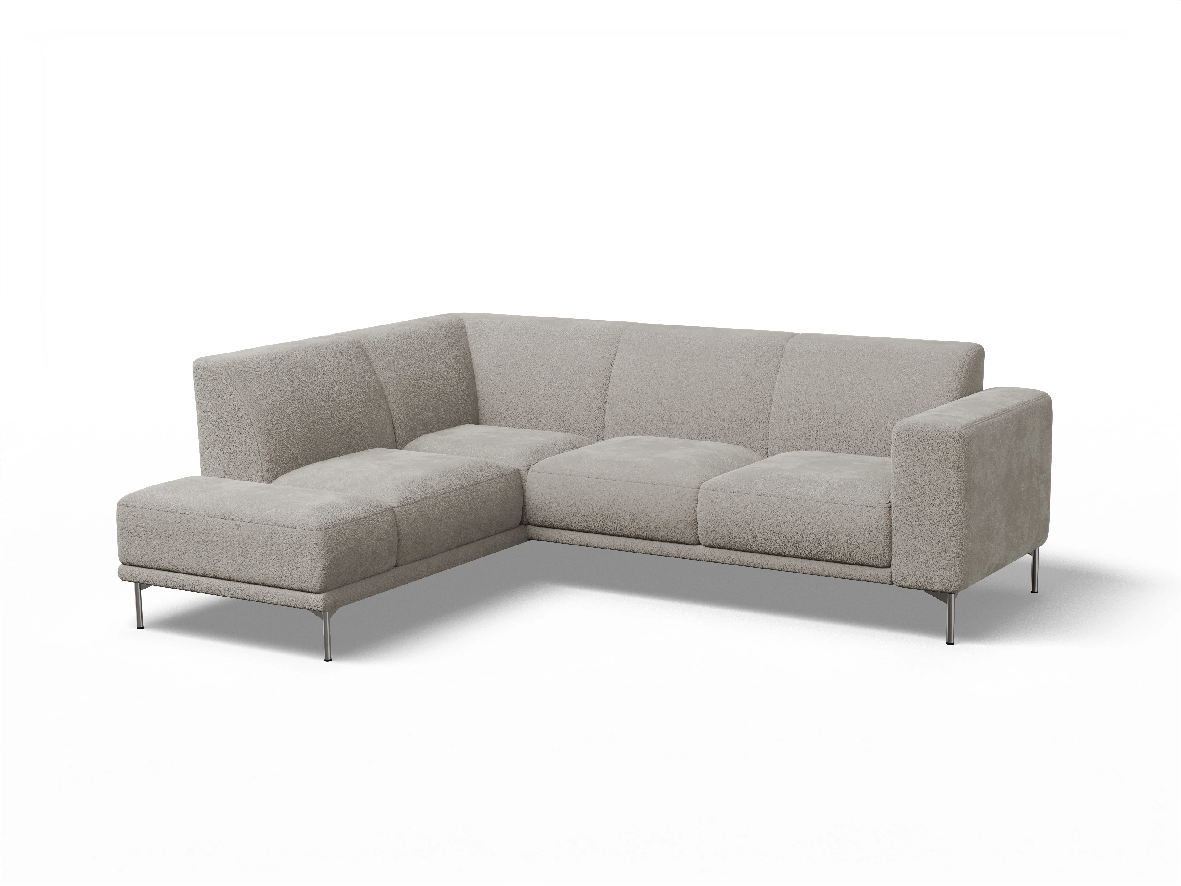 Das Viborg Ecksofa besteht aus einem Longchair links mit Rückenteil über die Ecke ohne Armlehne und einem 2,5-Sitzer mit einer Armlehne rechts.