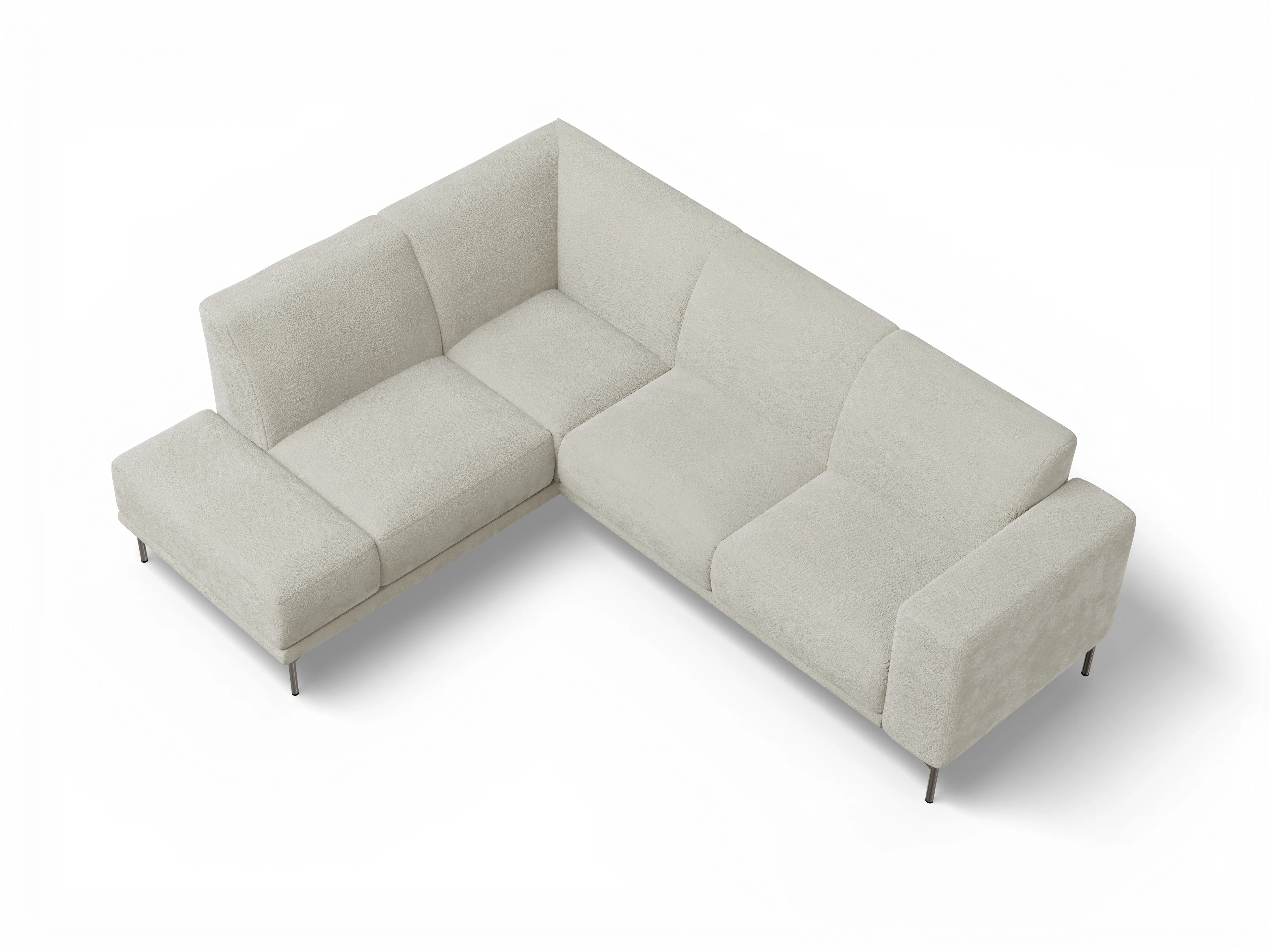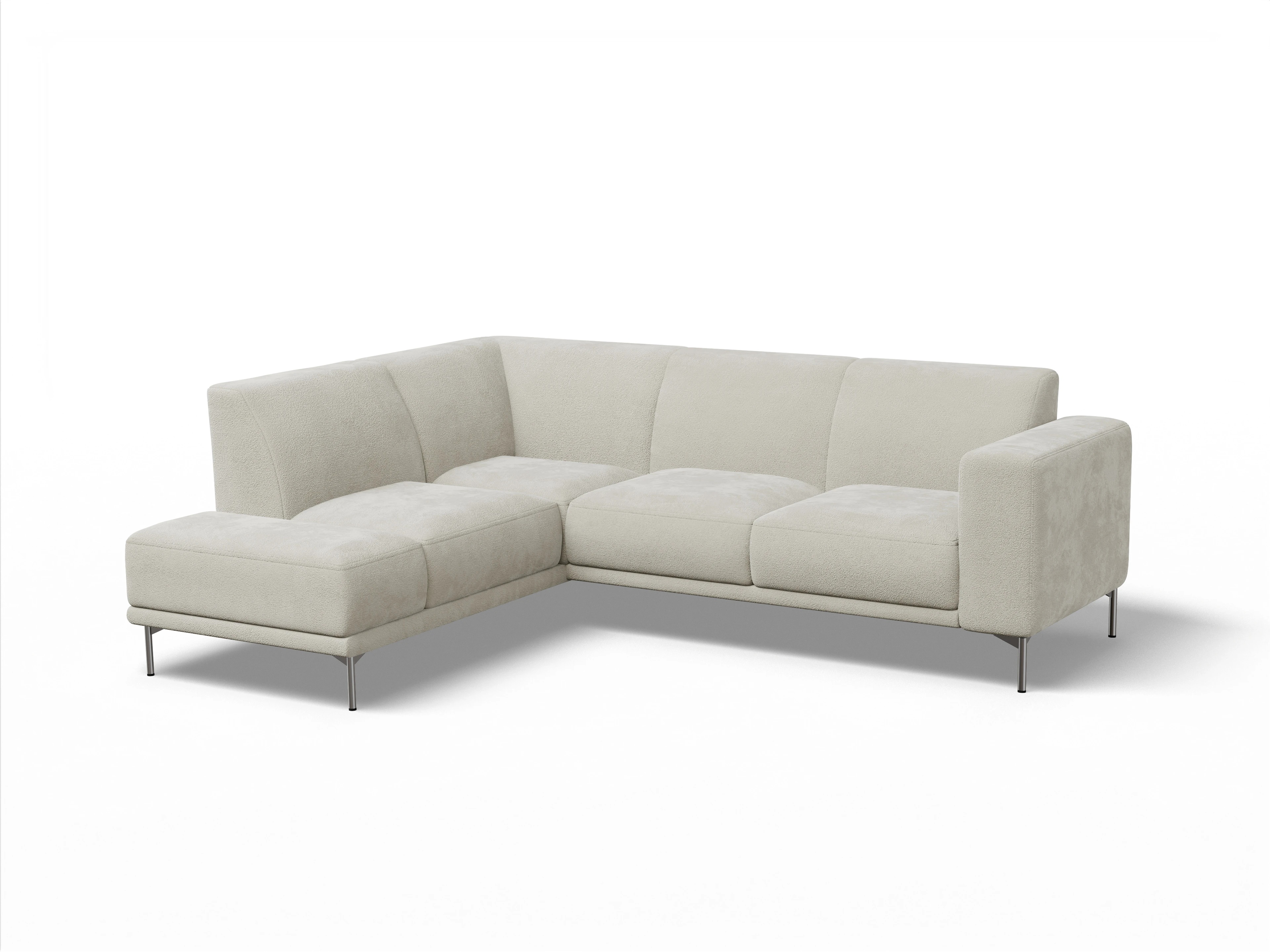 Das Viborg Ecksofa besteht aus einem Longchair links mit Rückenteil über die Ecke ohne Armlehne und einem 2,5-Sitzer mit einer Armlehne rechts.