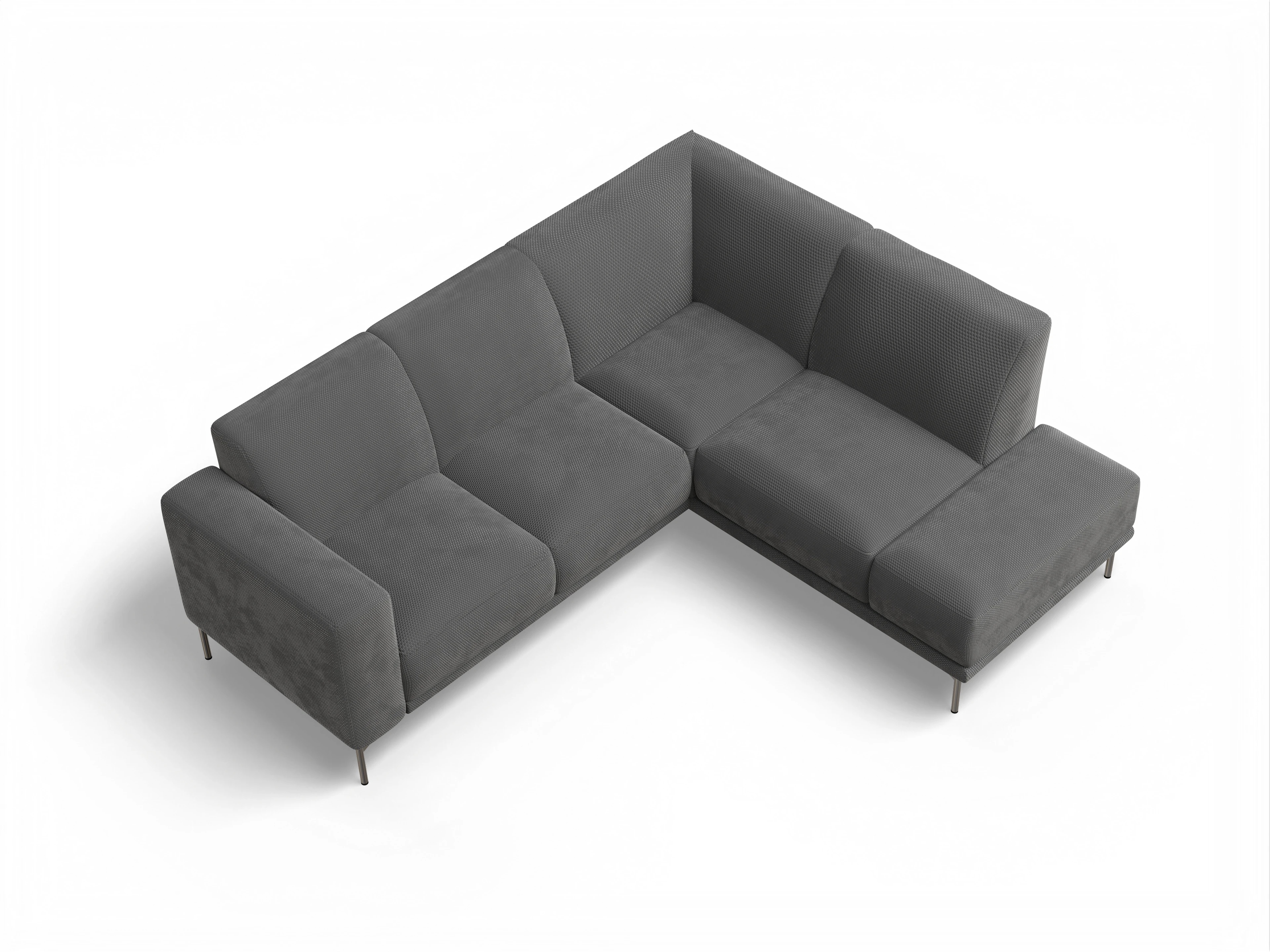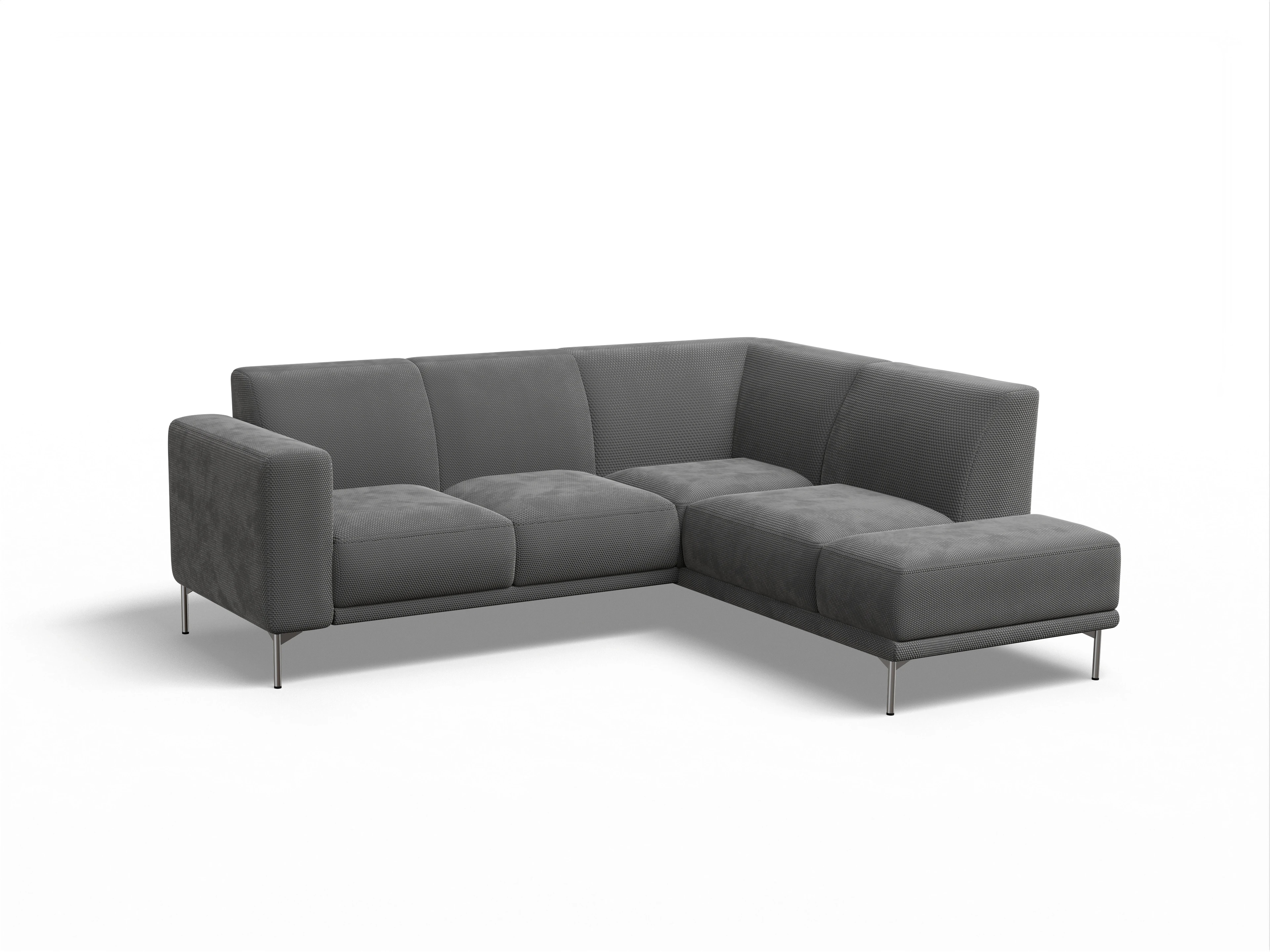 Das Viborg Ecksofa besteht aus einem 2-Sitzer mit einer Armlehne links und einem Longchair rechts mit Rückenteil über die Ecke ohne Armlehne.