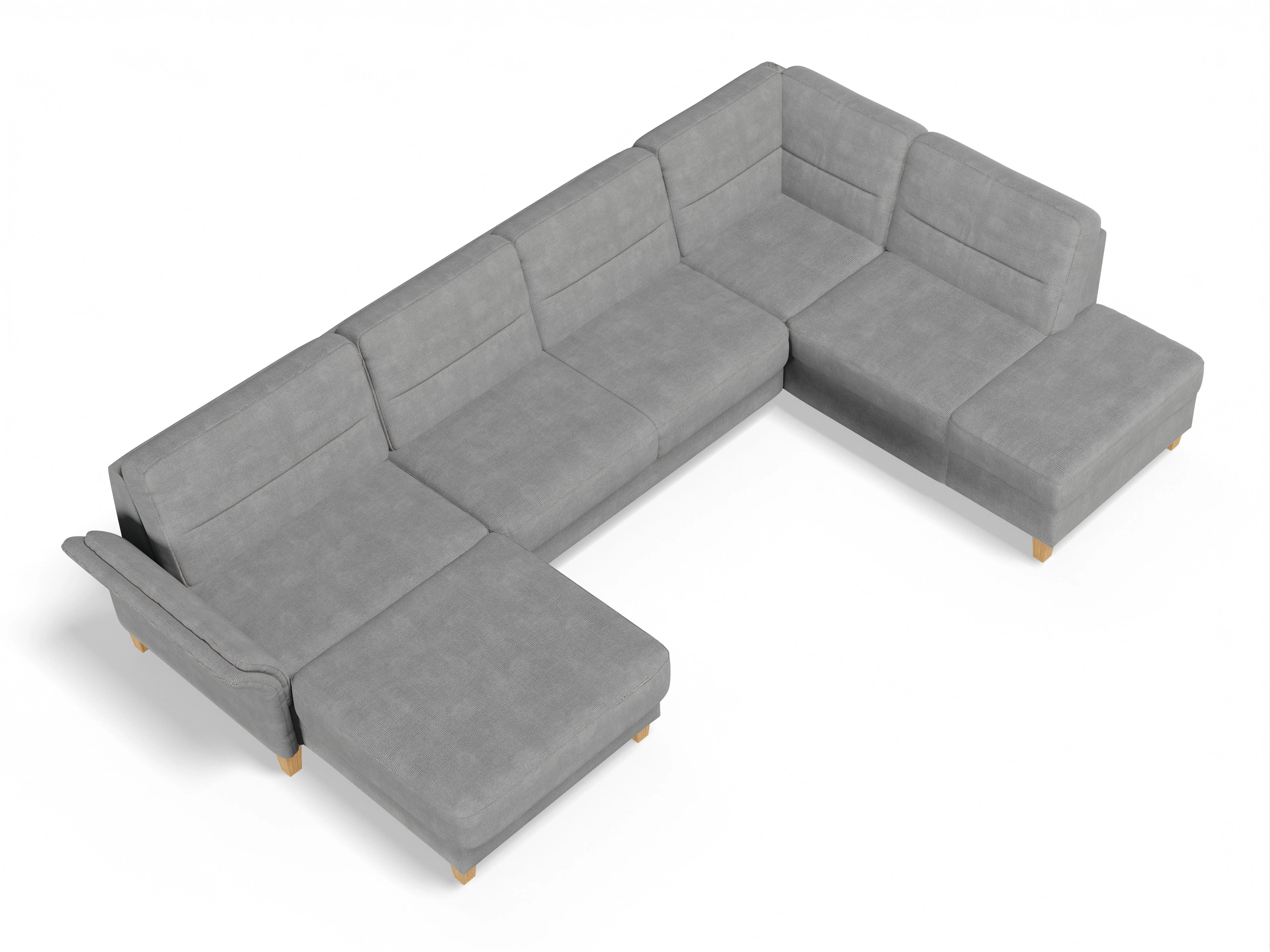 Die Wohnlandschaft besteht aus einem Longchair links, einem 2-Sitzer mittig und einer Ottomane rechts.