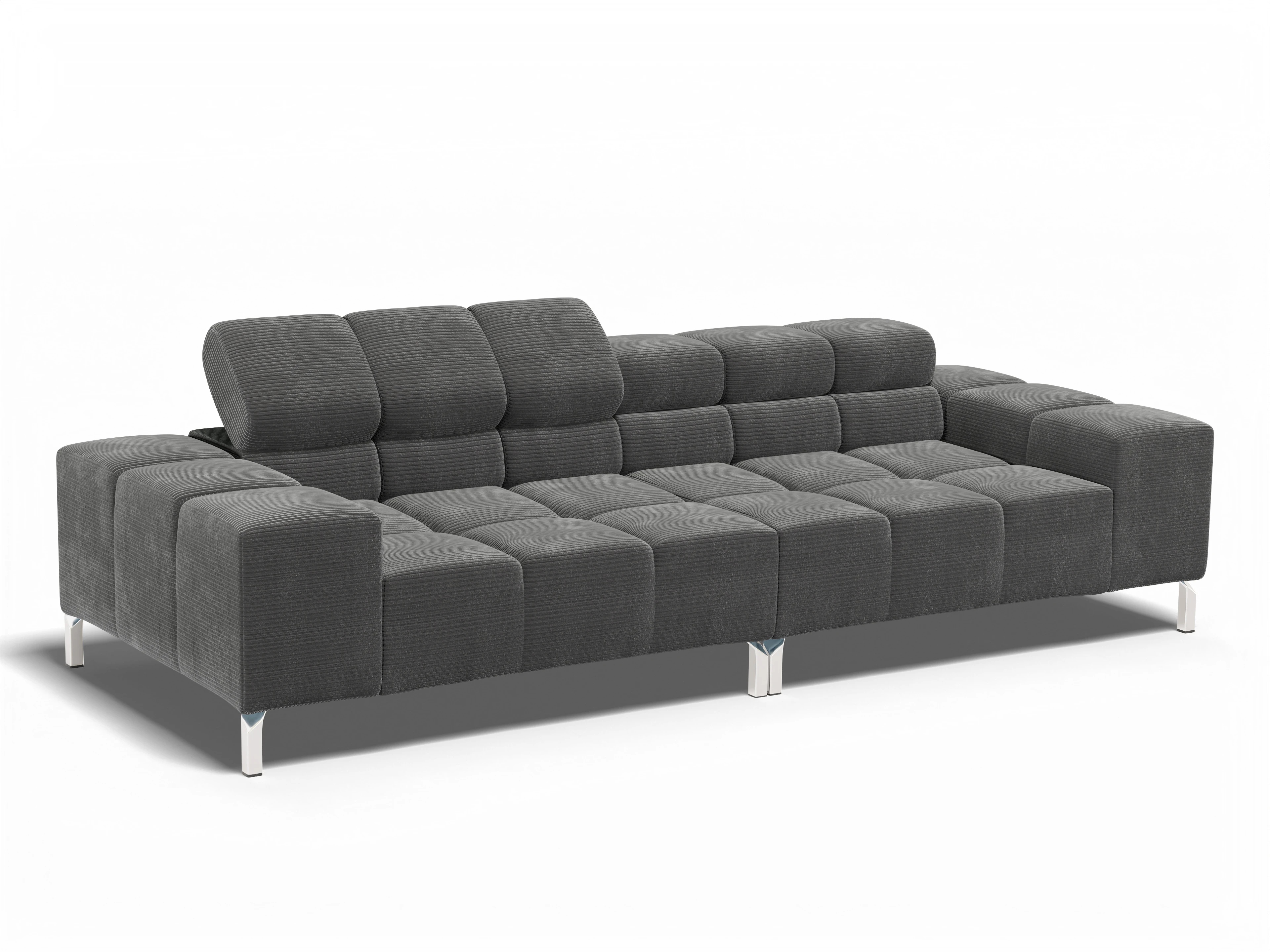 Die Kastensteppung verläuft vom Sitz zu den Armlehnen und vom Rücken bis zu den Kopfstützen und lädt mit seinem trendigen Stil und edlen Designs zum Loungen ein. Zwei verschiedene Sitzhöhen von 40 oder 43 cm stehen zur Auswahl. Bei den Füßen wählen Sie zwischen Chrom matt, Metall oder Holz, somit passt sich Wilo individuell Ihrem Wohnstil an und kann dank des immer im Originalbezug gelieferten Rückens auch frei in den Raum gestellt werden. Kombinieren Sie individuell Sitzbankelemente, Spitzecken, Longchairs und Umbauecken. Für einen Komfort der Extraklasse sorgt außerdem der motorische Sitzvorzug, welcher sich durch einen Touch-Control-Schalter bedienen lässt. Das Modell Wilo ist in hochwertigen Stoff-oder Lederbezügen, in vielen Qualitäten und Farben lieferbar und wird jetzt mit den Stoffen Cord oder Feincord zum Blickfang. Hier werden Sie zum Designer Ihres Sofas.