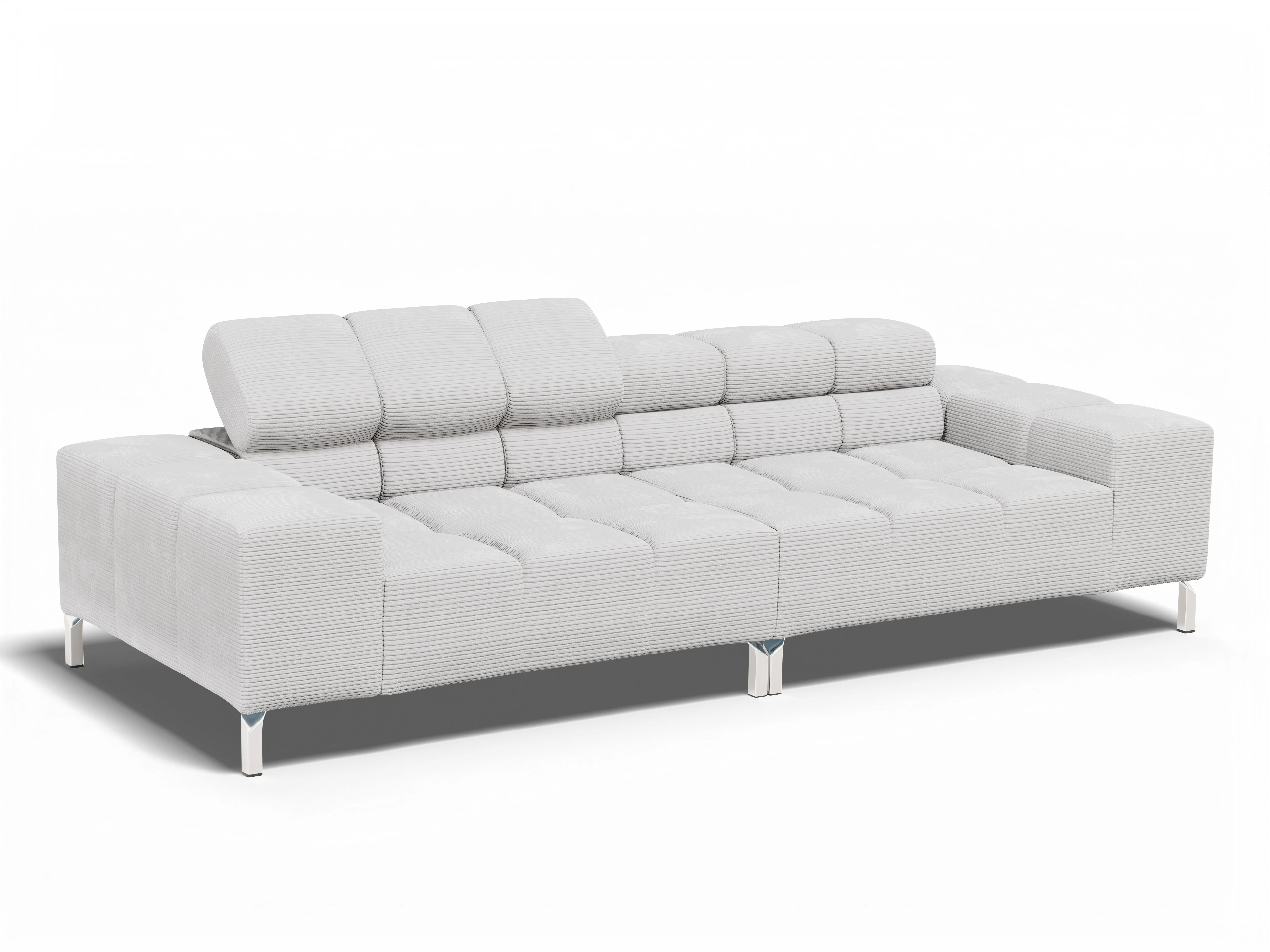 Die Kastensteppung verläuft vom Sitz zu den Armlehnen und vom Rücken bis zu den Kopfstützen und lädt mit seinem trendigen Stil und edlen Designs zum Loungen ein. Zwei verschiedene Sitzhöhen von 40 oder 43 cm stehen zur Auswahl. Bei den Füßen wählen Sie zwischen Chrom matt, Metall oder Holz, somit passt sich Wilo individuell Ihrem Wohnstil an und kann dank des immer im Originalbezug gelieferten Rückens auch frei in den Raum gestellt werden. Kombinieren Sie individuell Sitzbankelemente, Spitzecken, Longchairs und Umbauecken. Für einen Komfort der Extraklasse sorgt außerdem der motorische Sitzvorzug, welcher sich durch einen Touch-Control-Schalter bedienen lässt. Das Modell Wilo ist in hochwertigen Stoff-oder Lederbezügen, in vielen Qualitäten und Farben lieferbar und wird jetzt mit den Stoffen Cord oder Feincord zum Blickfang. Hier werden Sie zum Designer Ihres Sofas.