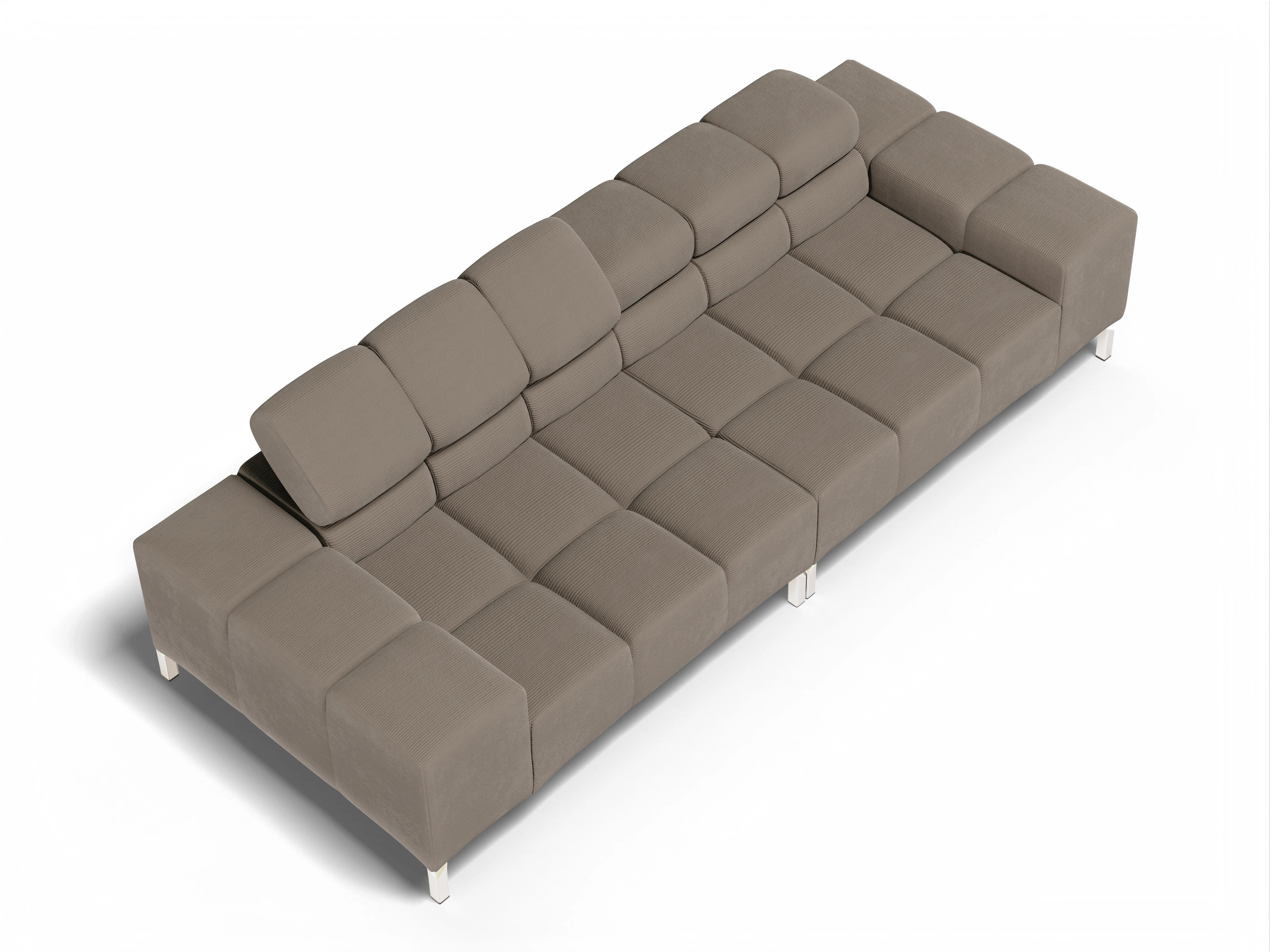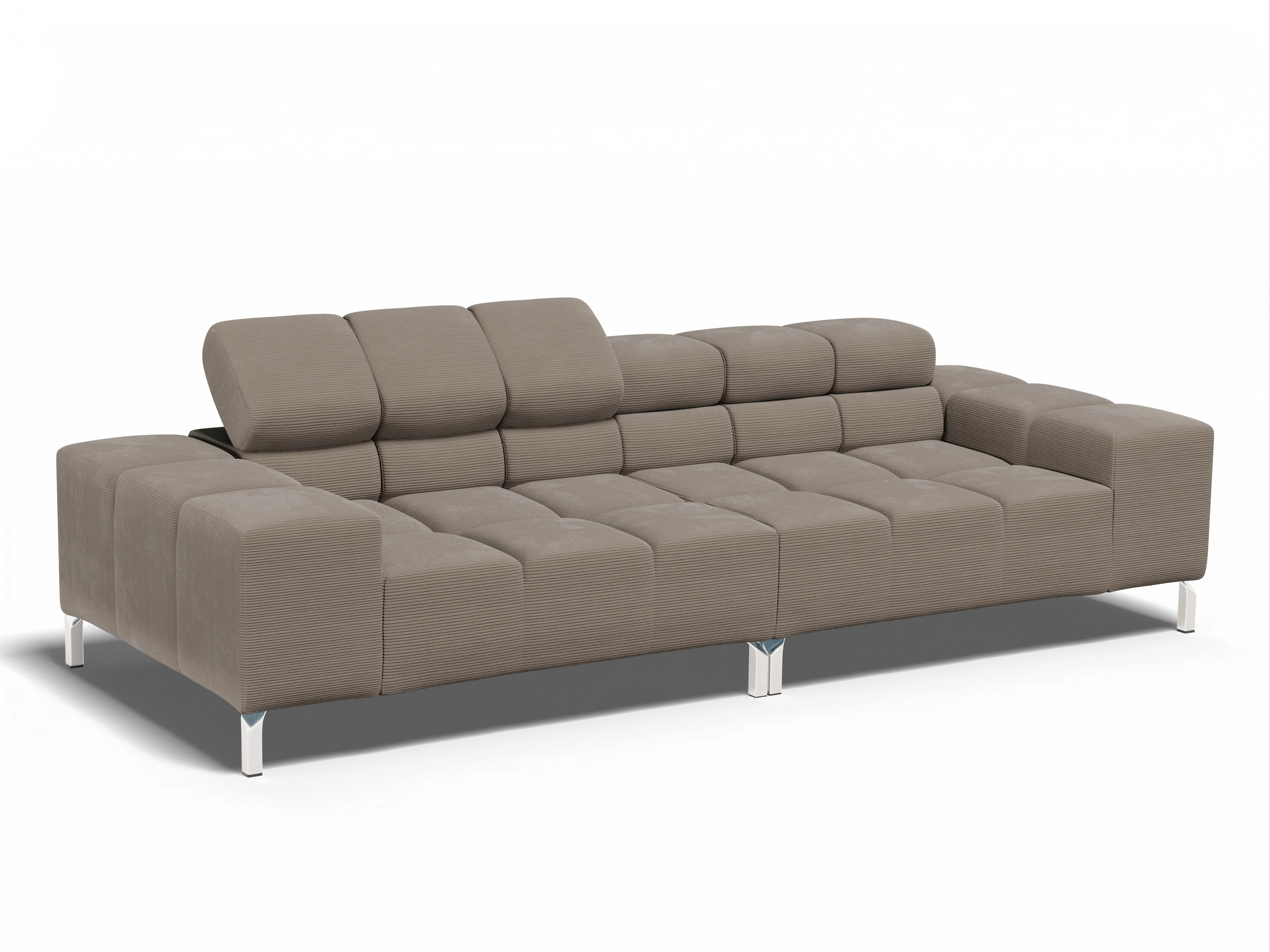 Die Kastensteppung verläuft vom Sitz zu den Armlehnen und vom Rücken bis zu den Kopfstützen und lädt mit seinem trendigen Stil und edlen Designs zum Loungen ein. Zwei verschiedene Sitzhöhen von 40 oder 43 cm stehen zur Auswahl. Bei den Füßen wählen Sie zwischen Chrom matt, Metall oder Holz, somit passt sich Wilo individuell Ihrem Wohnstil an und kann dank des immer im Originalbezug gelieferten Rückens auch frei in den Raum gestellt werden. Kombinieren Sie individuell Sitzbankelemente, Spitzecken, Longchairs und Umbauecken. Für einen Komfort der Extraklasse sorgt außerdem der motorische Sitzvorzug, welcher sich durch einen Touch-Control-Schalter bedienen lässt. Das Modell Wilo ist in hochwertigen Stoff-oder Lederbezügen, in vielen Qualitäten und Farben lieferbar und wird jetzt mit den Stoffen Cord oder Feincord zum Blickfang. Hier werden Sie zum Designer Ihres Sofas.